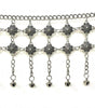 Our gorgeous belly chains are delicately draped with intricate floral medallions, linked in a soft lattice design that moves beautifully with the body. Finished with tiny dangling bells that make the faintest magical jingle, this piece sits effortlessly in the hips or waist.